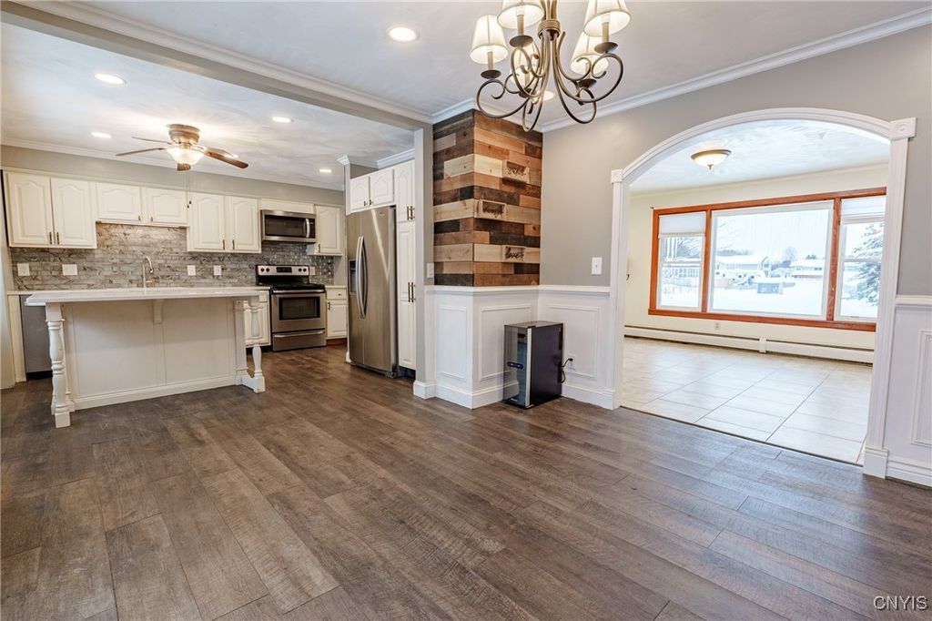 Set in highly sought-after Parkside Estates & backing directly to Lee Town Park via private gate access, this beautifully updated 4 bed, 2 bath home offers the perfect blend of comfort, style & location. With no rear neighbors and green space just beyond the 1/2 acre FULLY FENCED YARD, everyday life here naturally extends outdoors. The heart of the home is the thoughtfully UPDATED KITCHEN... An inviting gathering place with stunning quartz countertops, newer stainless steel appliances, a center island with seating, and a striking tile backsplash... all complimented by solid Kraftmaidâ„¢ cabinetry with stylish hardware. Reclaimed barn wood brings a cozy, organic element to the dining space and the French door leads to the deck with built-in seating and a convenient safety gate. The deck leads to the SPECTACULAR enclosed bluestone patio & paver fire pit area. The living room's generous size and connection to the dining space creates a seamless transition, making it a welcoming hub of the home. The COHESIVE LAYOUT provides a flexible floor plan with a great flow & excellent natural lighting. The lower level family / Rec room is a true standout, boasting a cozy gas fireplace, a wall built-in bookshelves, durable tile flooring and ample space for relaxation, movies, games & entertaining guests. This level is rounded out to include a spacious bedroom, a nice-size laundry room and another space that can be utilized as both a small home gym & mudroom space when coming in from the garage. ADDITIONAL PROPERTY HIGHLIGHTS include: Recessed lighting, beautifully updated oak & iron railing, fabulous custom moldings & trim work, NEW bay window in kitchen & vinyl windows throughout, spacious attic space w/ pull down step in garage. **Septic pumped October 2025!** Updated 50 gal water tank & highly efficient, natural gas baseboard heating. The play set & the shed stay! With its exceptional location, thoughtful updates & versatile living spaces, this home is one you will not want to pass you by. Quick access to Turin Rd /Rt 26 with Stokes Elementary right up the road, convenience stores, family-owned restaurants, grocery stores & Griffiss Tech Park all within reach.