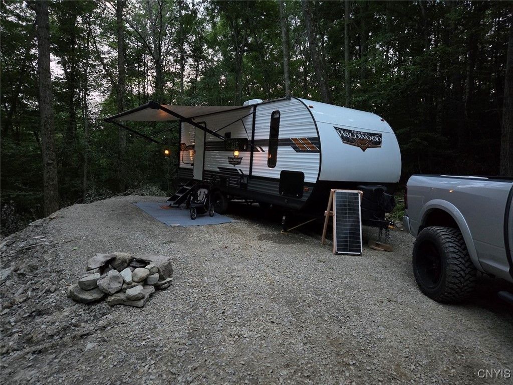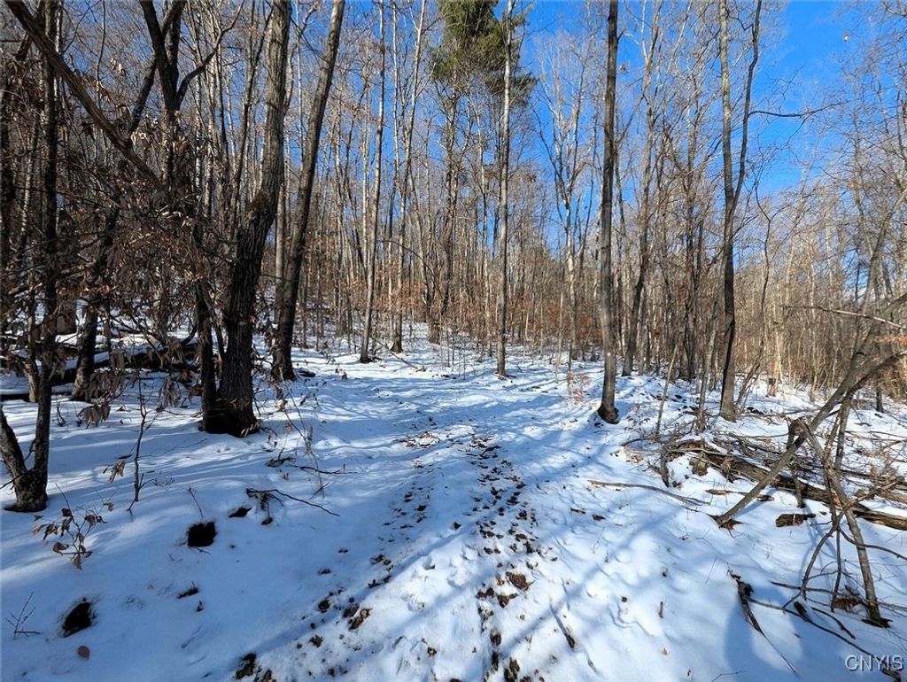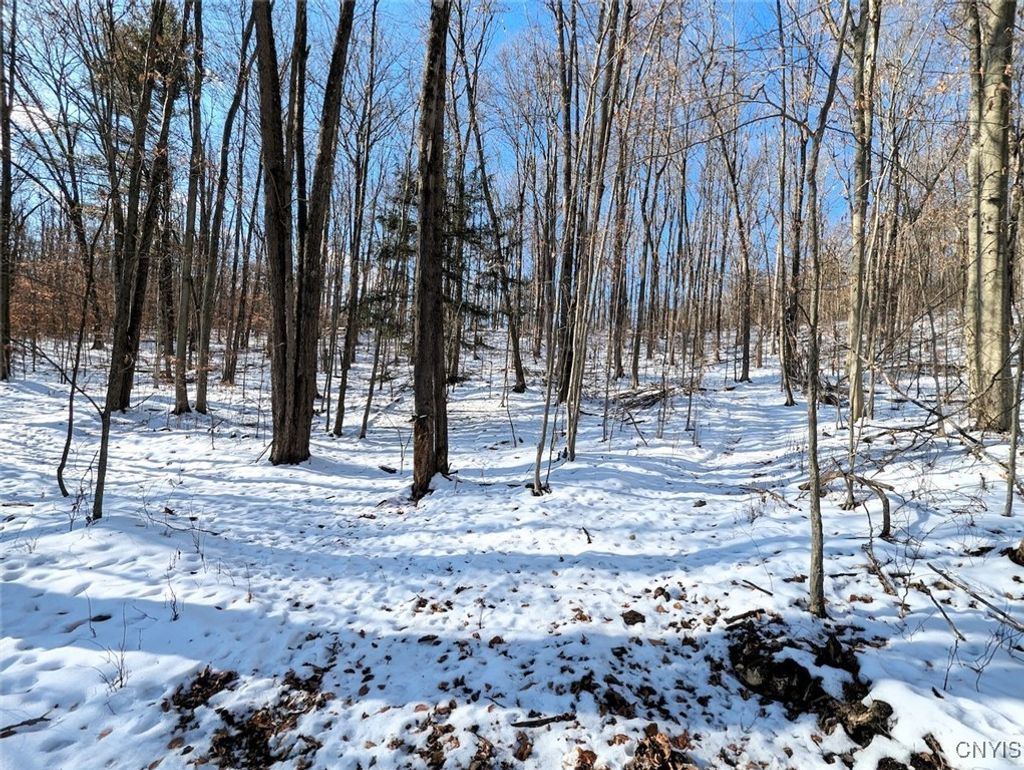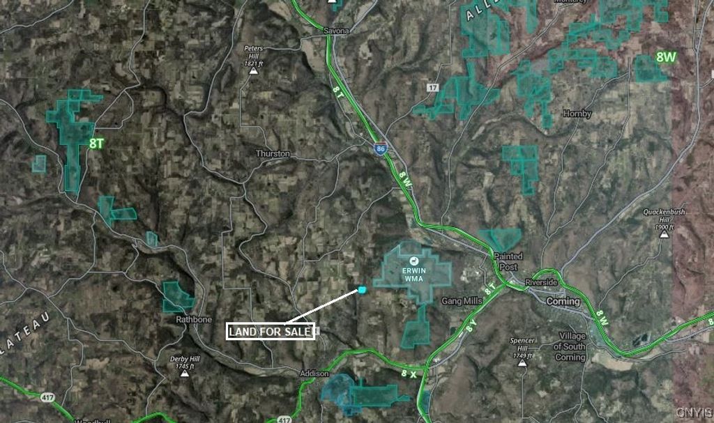 Excellent building lot and recreational land consisting of 11.4 acres in Erwin NY, Steuben County. Situated along a quiet paved road, this completely wooded property offers an excellent setting for a camp, cabin, or full-time residence. A newer gravel driveway provides gated access to a level clearing, creating a ready-to-use building site with utilities conveniently located across the street. Additional improvements include a small generator shed and a larger storage shed for keeping you and your gear dry between outdoor adventures. The land slopes gently from the road toward the back of the property where it borders an adjacent farm field. Well-established trails wind through the woods showcasing a healthy mix of oak, maple, and beech, and providing easy access for hiking, hunting, and recreation. Enjoy outstanding outdoor opportunities with the Erwin Wildlife Management Area and the Cohocton River nearby. The Erwin WMA offers 2,507 acres of state-managed wildlife habitat with thousands of additional acres of public land within a short drive. A peaceful country setting with convenient access, located just 10 miles west of Corning and minutes from I-86 and US-15. An existing survey is available, and all oil, gas, and mineral rights will transfer to the new owner.