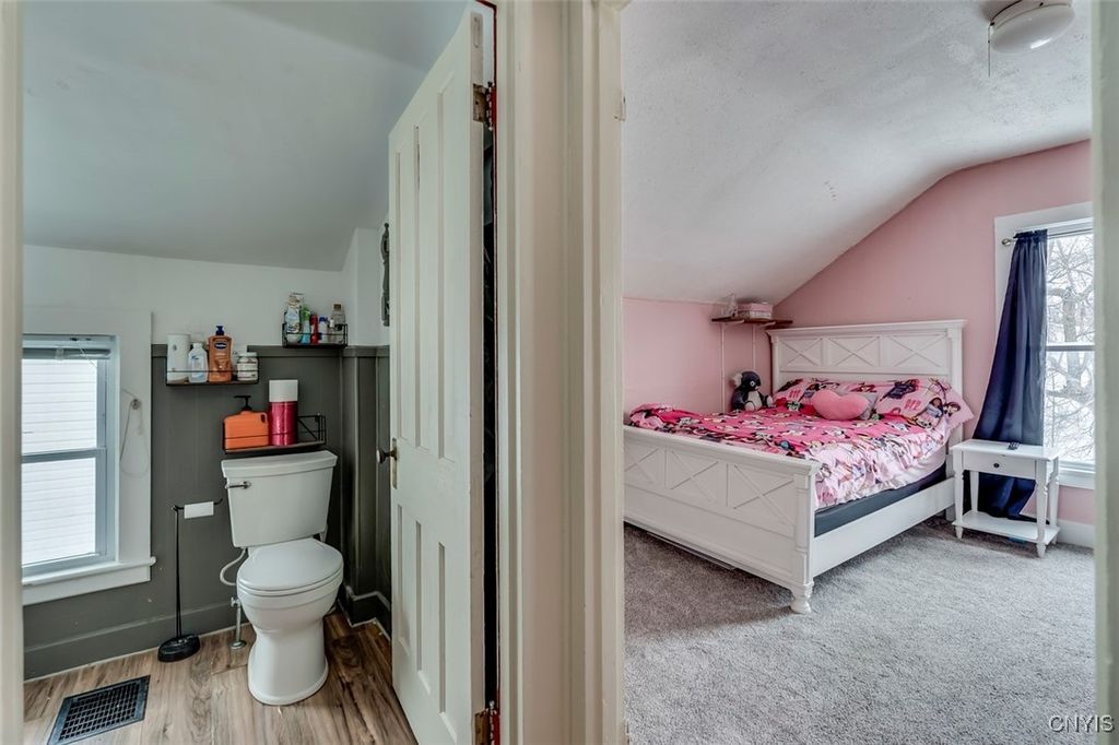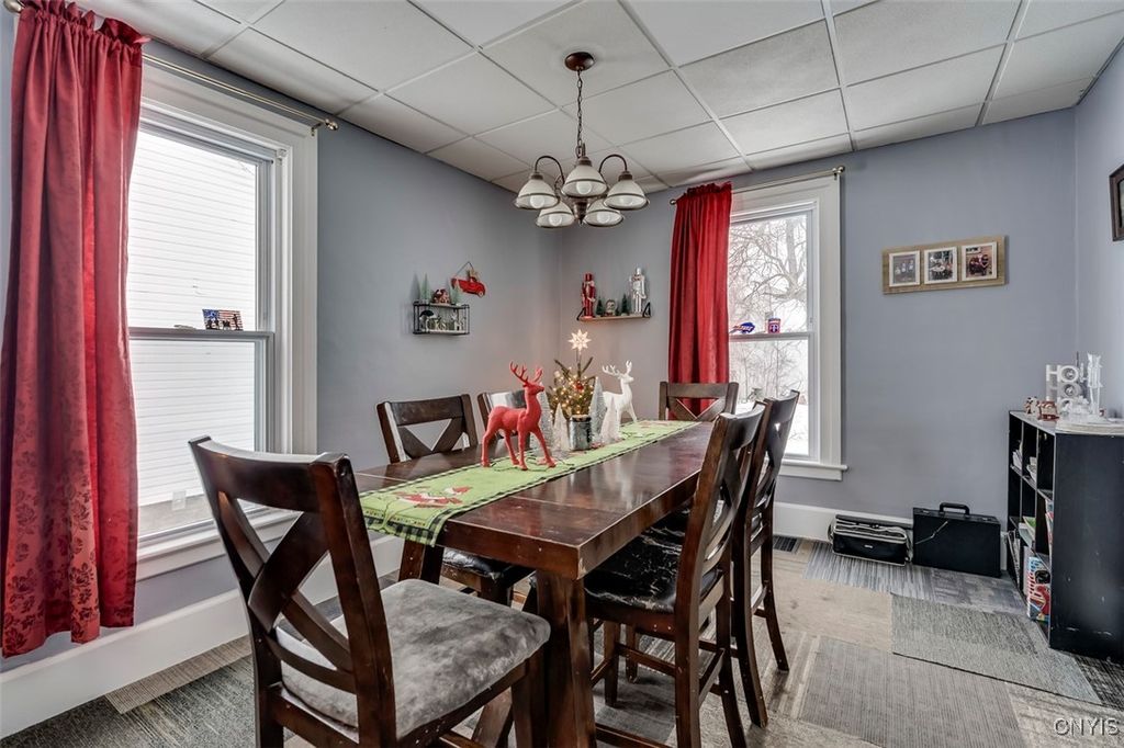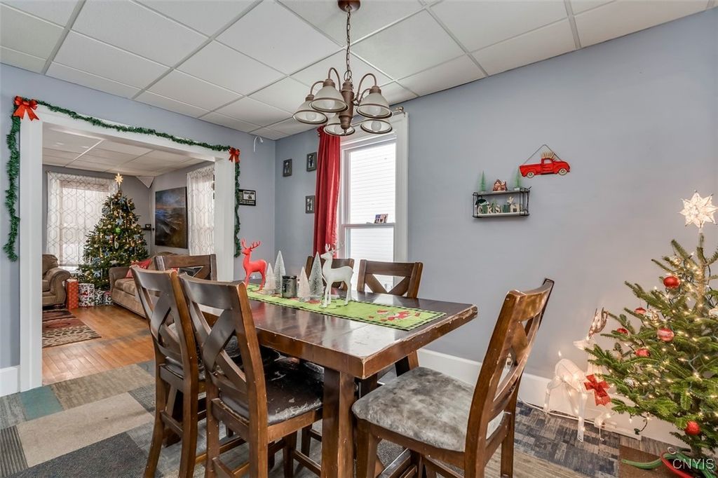 Start your new year with a new home! This village home will check all your boxes! Enter into the foyer to the stunning staircase with a hidden 1/2 bath under the stairs, french doors that open to the large living room with a pellet stove for those chilly nights, formal dining room that leads to the kitchen with ample cupboard space & another room off the back that has the washer/dryer - currently a playroom but could be a home office or transformed into a walk-in pantry. Upstairs you will find 3 large bedrooms all with closets & a modern full bathroom. A 3-season porch off the kitchen is perfect for relaxing or dropping those wet winter clothes & shoes. Hardwood floors throughout the home & over-sized windows give an abundance of natural light. Full dry basement perfect for storage & has additional washer/dryer hook-ups. Outside is a small patio area for grilling & entertaining. Detached 2 car 24 x 24 garage is fully insulated, heated, has electrical, shop space & a blacktop driveway. Large double lot = 1/2 an acre in the village! This rectangular lot goes from S.James all the way to S.Clinton offering room to play, garden or making it easy if you have a boat, trailer or other toys to park on your property. Only 15 minutes to Fort Drum!