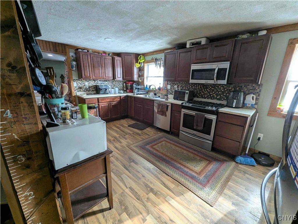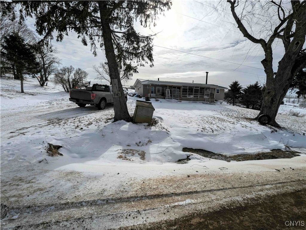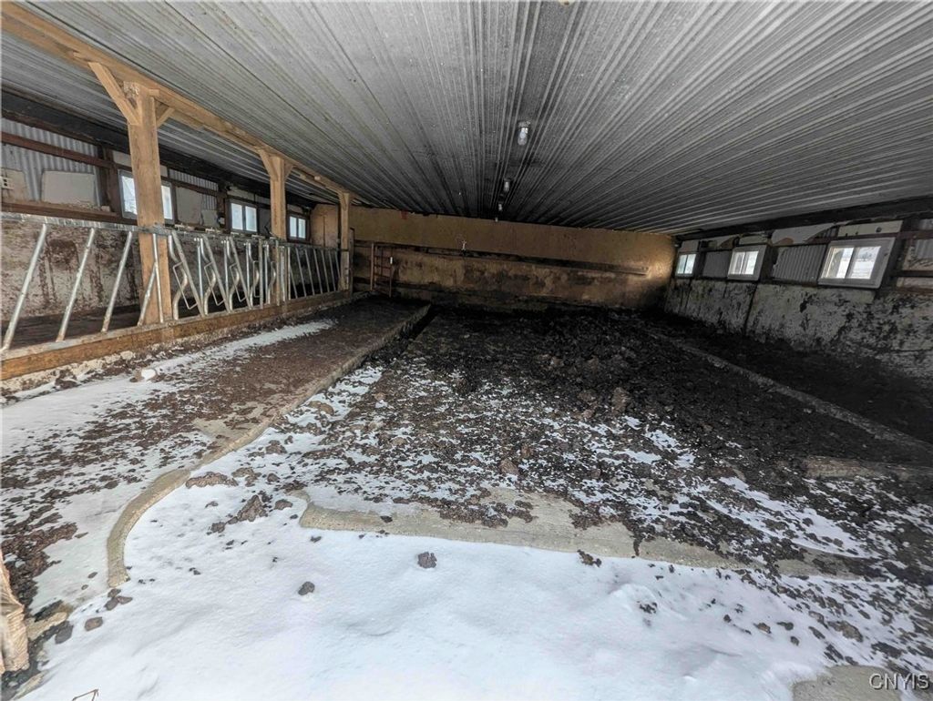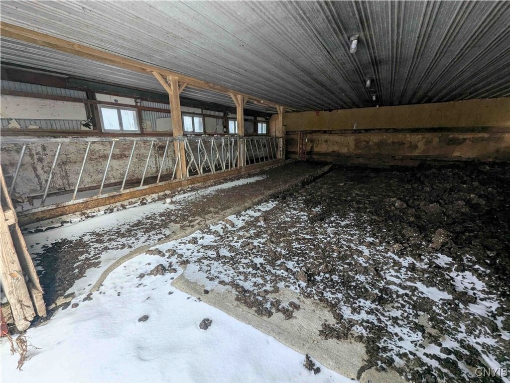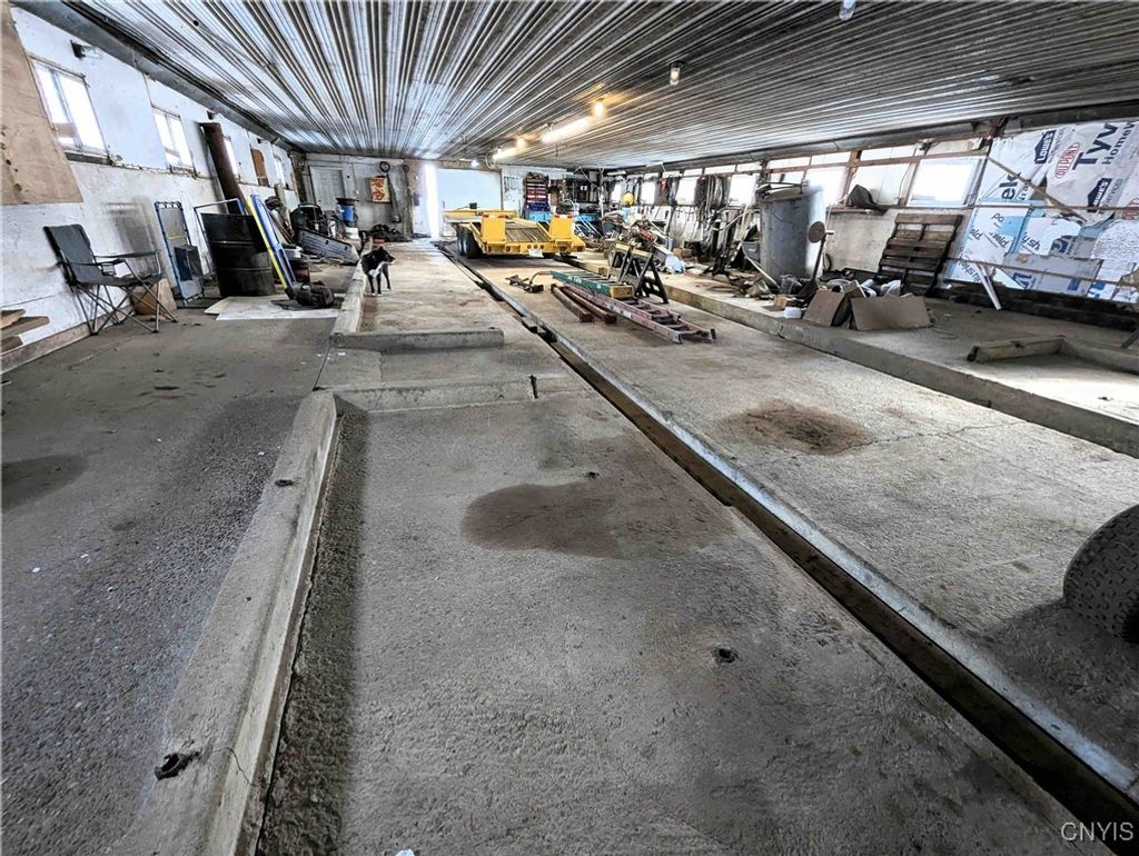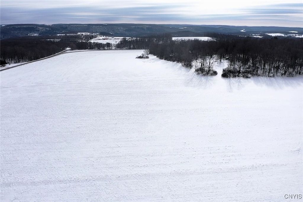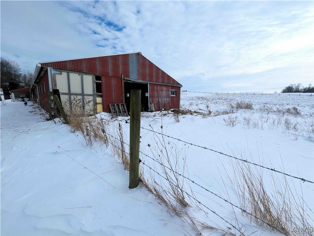 This country property consists of a home, large barn, farm fields, and woods on 75 acres located in Wellsville NY, Allegany County. Situated in the Town of Independence, this 3-bedroom, 1 bath ranch home offers a peaceful country setting along a quiet gravel road surrounded by sprawling farmland. Step onto the covered front porch and into a living room that seamlessly flows into an updated kitchen. A separate entrance at the end of the home leads to a spacious mudroom with additional storage. Hardwood floors extend through much of the first floor, complementing a full bathroom for added convenience. Downstairs, a full basement provides laundry hookups and ample storage space. Behind the home is a large 132 x 36 barn once used for milking cows that has been partially enclosed and converted into a functional workshop with running water and electricity. The west end of the barn remains equipped for livestock with headgates and six acres of fenced pasture. The remaining acreage consists of large, level farm fields and over 20 acres of timberland. With 4,200 feet of frontage on two roads and a prime rural location just off the paved road, this property presents an excellent opportunity to establish your own farm or enjoy a tranquil country lifestyle. All seller-owned rights will be conveyed to the new owner. Don't miss this rare chance to own a piece of beautiful countryside!