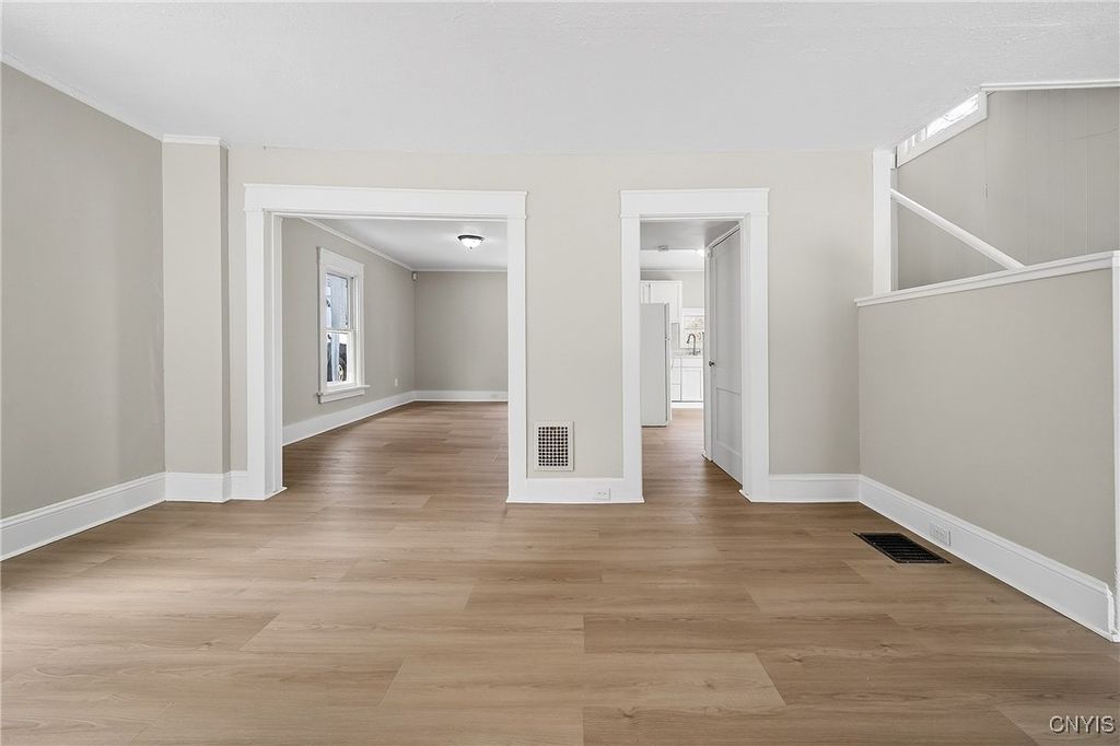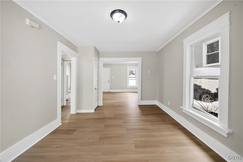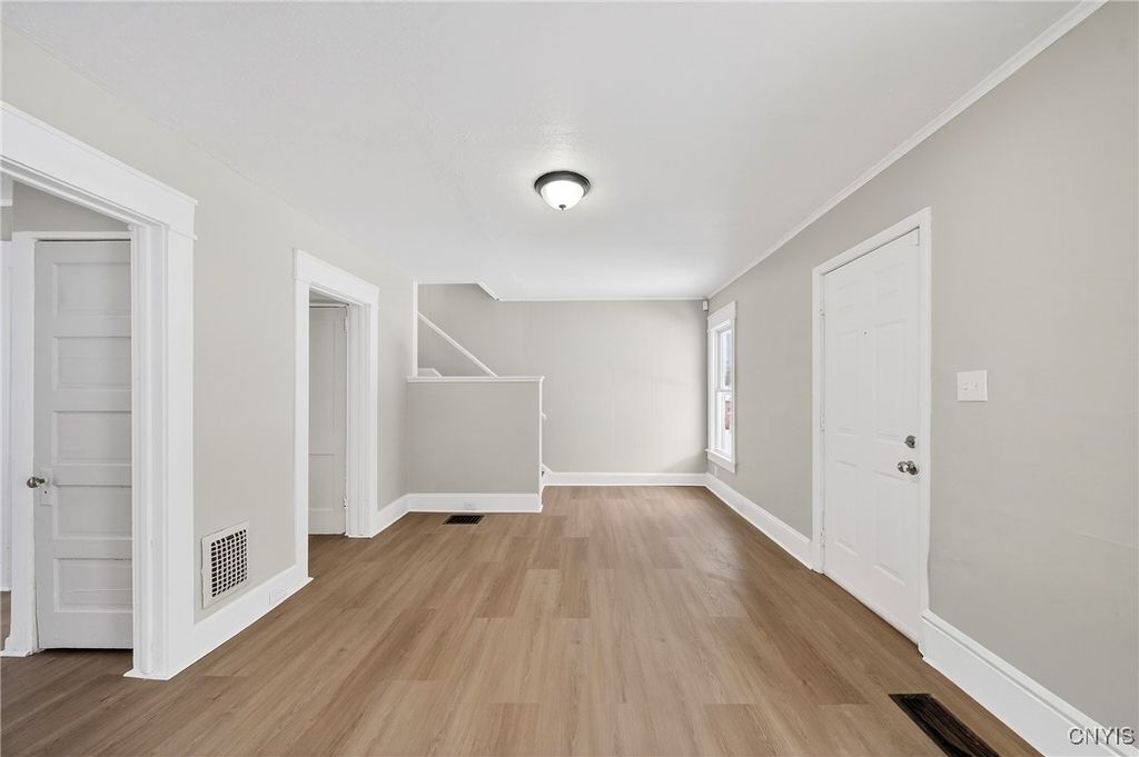 Welcome to this fully updated 3 bedroom, 1 bathroom home ready to rent today! Enter through the open front porch to find a bright spacious living room, a formal dining room, and a kitchen - all with new brand new flooring and fresh paint. Upstairs you will find a large primary bedroom boasting hardwood floors, fresh paint, a private balcony, double closets and built-ins. There are two additional bedrooms upstairs, each with a closet. The full bathroom is updated and also located upstairs. The full basement has a washer and dryer, utility sink, and plenty of extra storage space. Outside, you will find a driveway and a nice sized back yard. Exterior updates are planned for the spring due to the weather. Located near transportation routes, shopping, and restaurants for a convenient lifestyle. Pets are allowed with permission.