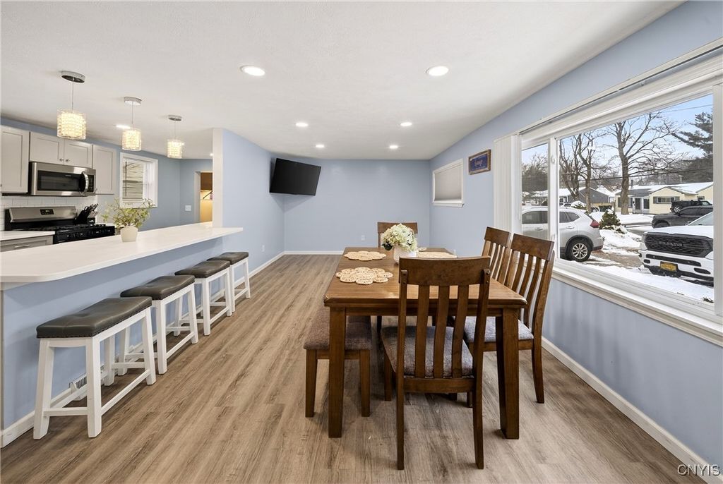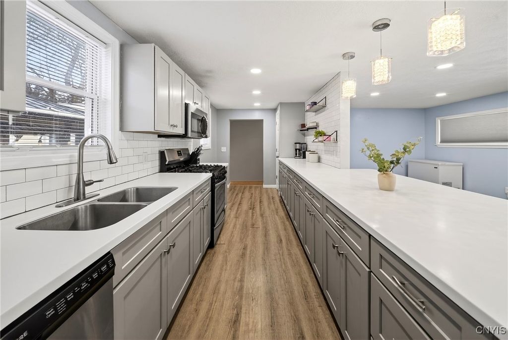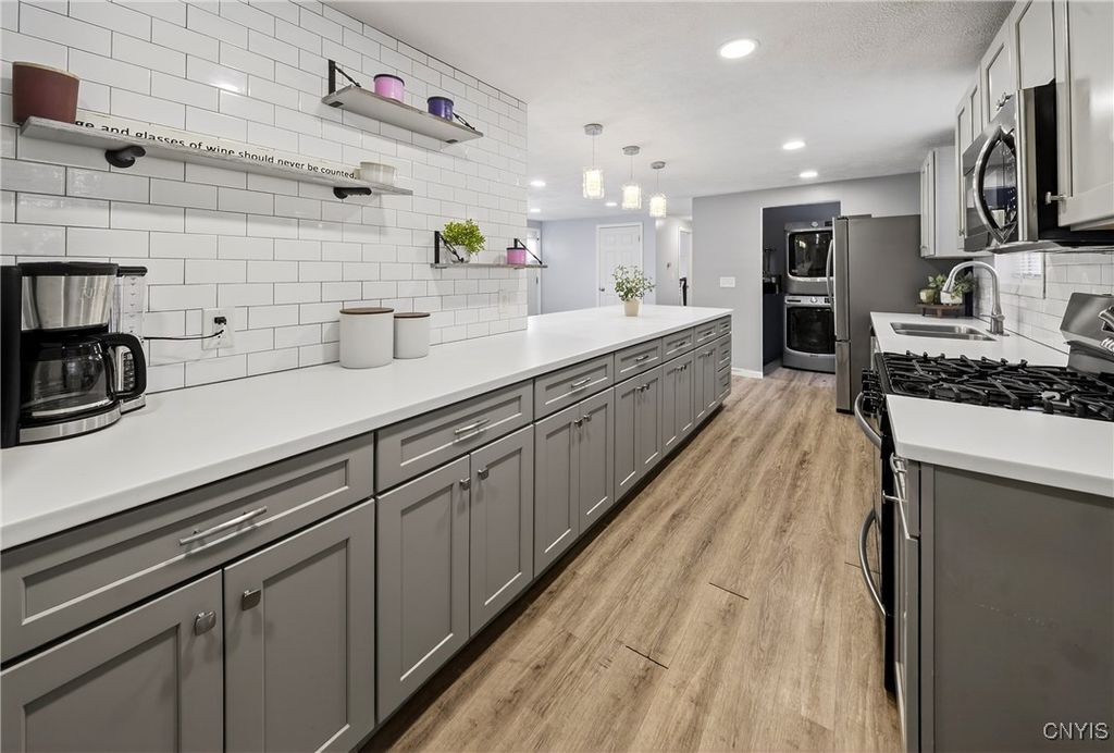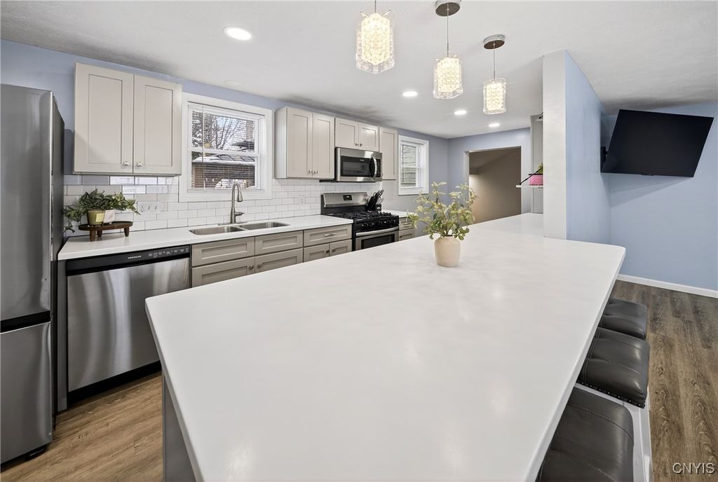 Welcome to this absolutely adorable and move-in-ready ranch in the Village of North Syracuse! This 3-bedroom, 1-bath home truly has everything done for you "” just unpack and enjoy. In 2018, the home underwent an extensive renovation taken all the way down to the studs, including new windows, creating a solid, modern foundation that blends peace of mind with stylish finishes. On top of that, the roof, furnace, and central AC are all less than 3 years old, so the big-ticket items are already handled. Step inside and fall in love with the show-stopping kitchen "” featuring an island peninsula, endless cabinetry, and brand new appliances. It's bright, modern, and perfectly designed for both everyday living and entertaining (and yes... it's even better in person). Out back, you'll find a fully fenced yard that's set up for year-round fun, complete with a fire pit, a hot tub and gazebo that stay with the home "” your own private oasis for relaxing or hosting friends. With 3 comfortable bedrooms, a smart layout, and a home that's been thoughtfully updated throughout, this one truly checks all the boxes. Cute, clean, updated, and 100% move-in ready.