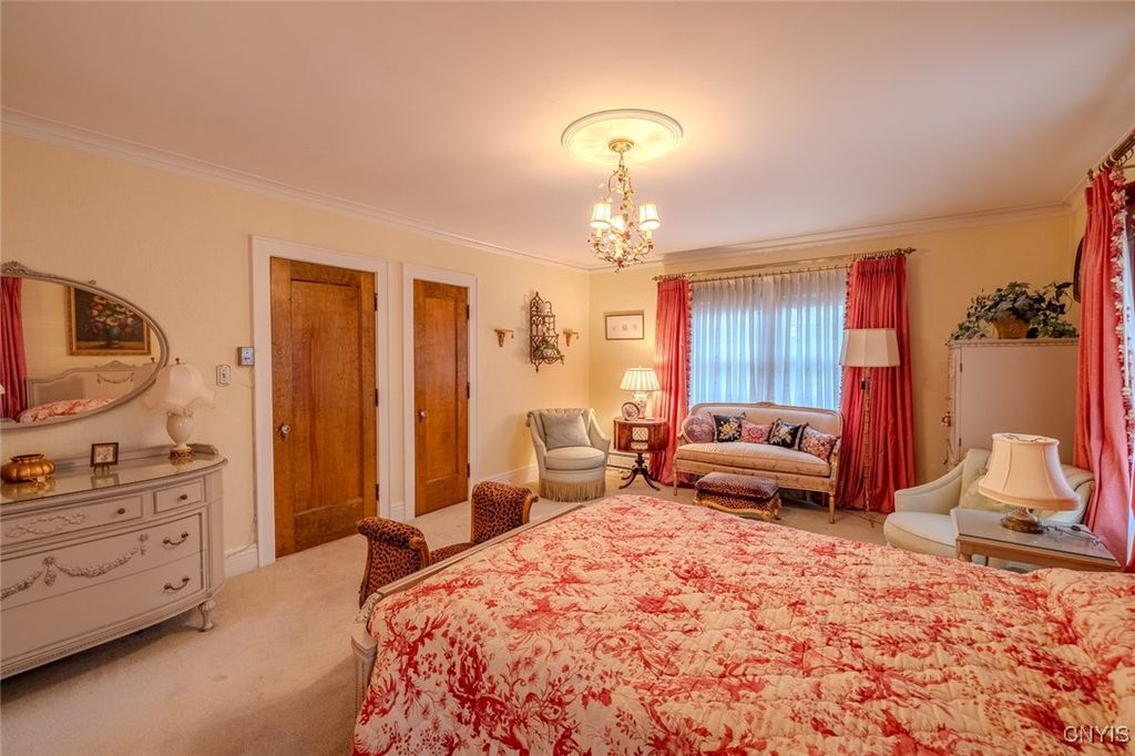 Located on prestigious Rugby Road in the heart of Sedgwick Farm, this classic brick center-hall Colonial offers timeless architecture and gracious proportions. Blending enduring character with a flexible layout, this home features five bedrooms, three and a half baths, custom moldings, and original wood floors. Leaded glass accents and custom built-in cabinetry throughout the home highlight the craftsmanship of a bygone era. Elegant Living Spaces: The main level welcomes you with a grand living room centered around a wood-burning fireplace. Double French doors lead to a bright sunroom, offering an inviting space for relaxation or entertaining. The formal dining room, rich with traditional details, provides an elegant setting for gatherings. A Chef's Foundation: The eat-in kitchen serves as a functional workspace filled with abundant natural light and a comfortable breakfast area. While awaiting your personal aesthetic touches, the kitchen is already anchored by a professional-grade Vulcan gas oven. Known for its durability and precision in commercial kitchens, this high-end appliance offers a superior cooking experience for the home chef and serves as a premier centerpiece for future culinary upgrades. Flexible Accommodations: Second floor features three spacious bedrooms, including a primary suite. One additional bedroom offers direct access to a private sunroom"”perfect for a home office, nursery, or peaceful retreat. Third Floor: Adds two more bedrooms and a full bath, providing an ideal layout for guests, extended family, or a secluded work-from-home suite. Expansive Lower Level: The expansive lower level is anchored by a functional second kitchen that opens directly into a large family room, creating a great setup for entertaining or guest hosting. This level also includes a private office and a laundry room, plus two separate storage rooms for easy organization. It's a flexible layout that offers plenty of extra space to spread out and enjoy. With its prime Syracuse real estate location and a perfect balance of historic charm and thoughtful design, this Sedgwick Farm gem is ready for its next chapter.