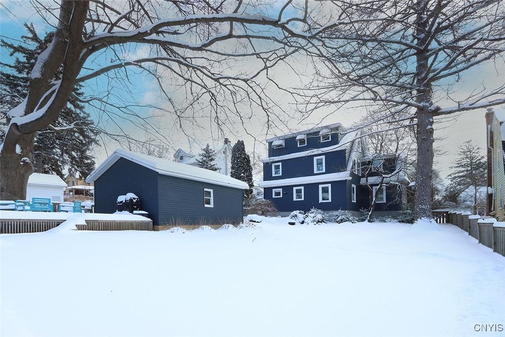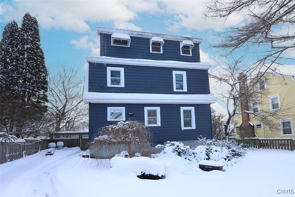 This classic colonial is set in the sought after Dewittshire neighborhood and offers attractive curb appeal with neatly kept landscaping and a welcoming sidewalk leading to the front steps. A traditional gabled portico frames the entry, while a glass paned front door allows natural light into the foyer with its open staircase and charming allure. Hardwood floors and Craftsman-inspired details, including rounded archways, built-in nooks and vintage-style glass doorknobs, add character throughout. The living room provides a cozy gathering space with a brick wood burning fireplace. An archway leads into a versatile, light-filled room with a wall of windows, ideal for a den, sitting area or playroom. Adjacent, flow seamlessly into the formal dining room, perfect for family meals and hosting. The functional kitchen is designed for everyday use, with ample cabinetry, generous countertops, pantry and a breakfast bar for casual dining. Upstairs, there are three bedrooms and a shared full bath. The primary bedroom includes a bonus room that can serve as a sitting area, study or additional closet space. Built-in cabinetry and storage in select rooms and hallway area add both character and convenience. The third floor provides additional living space with another bedroom, full bath and study, ideal for guests or a private retreat. Outside, relax in the fully fenced, flat backyard shaded by mature trees. A detached one-and-a-half-car garage includes electricity and workshop space, providing flexibility for hobbies and storage. A deck behind the garage offers a relaxing space to enjoy time outside. Move-in ready and conveniently located, this home is just minutes from schools, shopping, downtown, hospitals and major routes. J-D Schools! Delayed showings until Wednesday, 2/4 at 10 am.