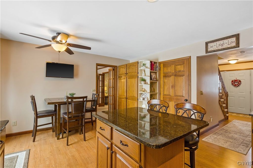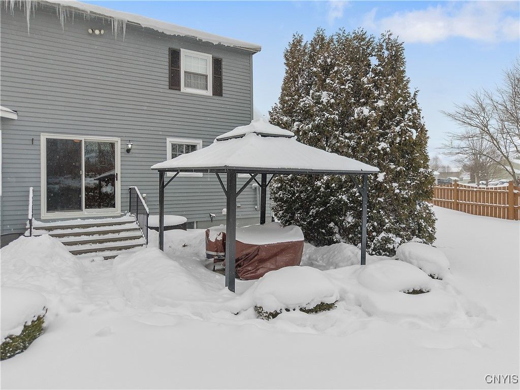 Welcome home to this spacious and versatile 4-bedroom, 3.5-bath Cape Cod nestled in the heart of Brewerton, NY. With 1,875 sq ft of thoughtfully designed living space plus a fully finished basement, this home offers room to grow, gather, and adapt to your lifestyle. The first floor features a flexible bedroom or home office, an inviting living room, a formal dining room perfect for hosting, and an eat-in kitchen highlighted by granite countertops and ample cabinetry. A first-floor laundry and convenient half bath add everyday ease. Upstairs, you'll find three generously sized bedrooms and two full bathrooms, including a comfortable primary suite with a walk-in closet and private bath. The fully finished basement truly sets this home apart, offering an impressive family room with a built-in entertainment center, a full bathroom, full kitchen, laundry area, and two additional rooms previously used as bedrooms for an in-law suite (note: no egress). This space is ideal for multi-generational living, extended guests, or recreation. Outside, enjoy a fully fenced backyard designed for relaxation and entertaining, complete with a beautiful stone patio and gazebo. Additional highlights include an attached 2-car garage and a permanent generator for year-round peace of mind. A wonderful opportunity to own a well-appointed home with exceptional living space in a desirable location"”this Brewerton Cape Cod is a must-see! And don't forget, Oneida Shores Park is right across the street! Multiple offers received. All best and final offers must be received by 10:00 am Wednesday, 2/4.