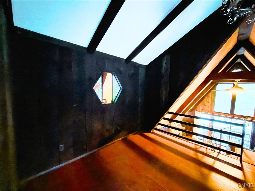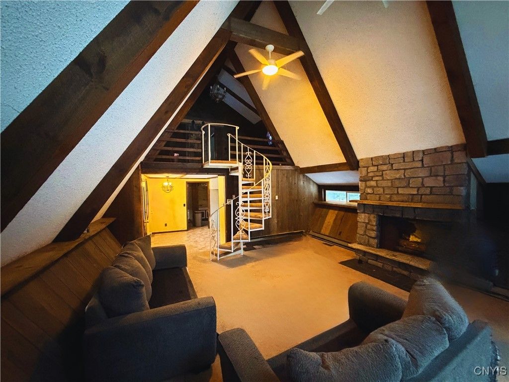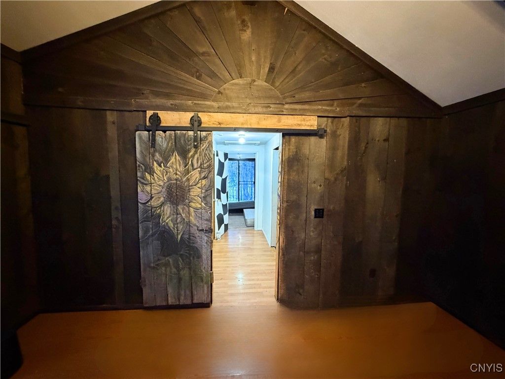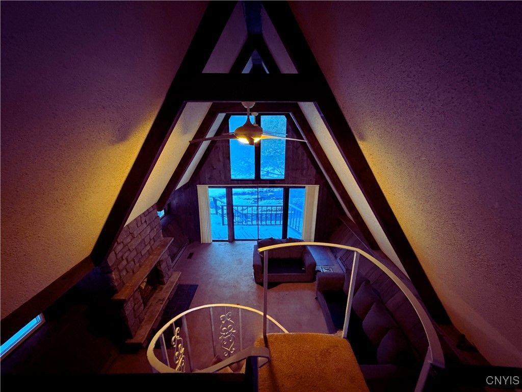 This enchanting creek side cabin takes you to a place of serenity. Nestled in a tranquil wooded setting, this adorable two bedroom, two bath cottage is the definition of rustic charm. Whether you are looking for a weekend getaway or a cozy permanent home, this property offer's the perfect blend of natural beauty and warmth. The private, first floor bedroom radiates natural light due to its large sliding glass door opening onto a terrace which overlooks the babbling Cold Spring Brook. Passing through the "light and airy" eat-in-kitchen, you'll soon discover the spacious, well-lit living room area with an open concept, vaulted ceilings and a well constructed stone fireplace. This large living space allows natural light to filter in through large windows. Step just through one of the doors to the wrap around deck. The upper level can be reached by climbing the study metal spiral staircase into a potential office or sitting room. This space is adorned with a stained glass window and a balcony that overlooks the front yard. Upon sliding the handcrafted barn door, you will make your way past the second bathroom, spacious hall closet and into the upstairs bedroom, also having access to yet another outside balcony with a breathtaking view of the southern portion of the property. This property is a five minute drive to Oneida Lake and 15 minutes to the interstate and shopping.