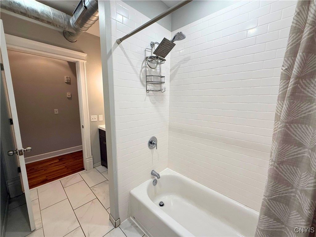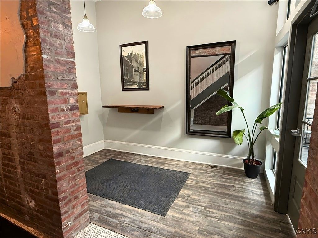Discover the perfect balance of historic charm and modern luxury at The Wood Building, a beautifully renovated landmark in the heart of Downtown Syracuse. Step inside Unit 3A, a 2-bedroom, 2-bathroom apartment featuring soaring vaulted ceilings, exposed brick, and polished historic hardwood floors. The contemporary kitchen offers quartz countertops, stainless steel appliances, a gas range, microwave, dishwasher, and ample storage"”ideal for both everyday living and entertaining. Enjoy central heating and air conditioning, an in-unit washer and dryer, and thoughtfully designed modern finishes throughout. Located in Downtown Syracuse, you're just steps from popular cafés, restaurants, bars, Armory Square, and the courthouse, with Syracuse University just a 5-minute drive away. Whether you're heading out for coffee, dinner, or a night on the town, everything is right outside your door.